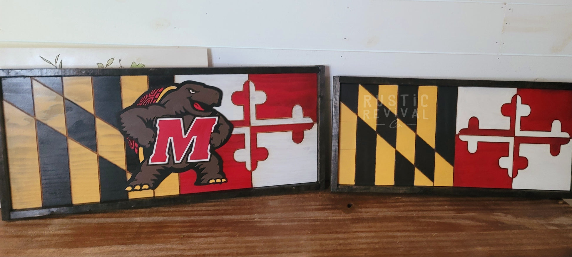 Introducing our custom made-to-order solid wood Maryland flags! Each flag is meticulously crafted from high-quality wood, showcasing the iconic Maryland design. Perfect for home decor or gifts, these unique pieces celebrate Maryland pride with timeless elegance.